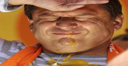 Kollegen wurden von den Eiern so verschmutzt, dass sie sich nach der