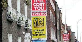 Angesichts knapper Umfrage-Ergebnisse hat der irische Europa-Minister Dick Roche seine Landsleute davor gewarnt, beim Referendum über den neuen EU-Vertrag am kommenden Donnerstag mit "Nein" zu stimmen. Eine Ablehnung würde die EU in eine schwere Krise stürzen, sagte Cowen am Sonntag dem britischen Fernsehsender "Sky News". Hauptleidtragende seien dann aber die Iren selbst, denn kaum anderes Land habe von der Dynamik und der Leistungsfähigkeit der EU mehr profitiert als Irland, mahnte der Minister.