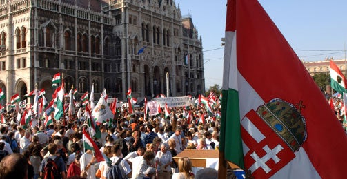 Ein Leiter der Organisation Ungarisches Nationalkomitees 2000 versuchte die Demonstranten zu überzeugen, dass die Demonstrationen auf friedlichem Weg nicht zum Erfolg geführt werden könnten. "Ohne Blut gab es noch keine Revolution", erklärte der Mann.