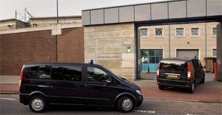 Kürze in einem Kleinbus mit verdunkelten Scheiben erstmals in das nur wenige