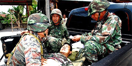 Den dritten Tag in Folge haben sich thailändische und kambodschanische Truppen am Sonntag Feuergefechte im Grenzgebiet bei den Tempelanlagen von Ta Muen und Ta Kwai geliefert. Beide Armee hätten erneut Artillerie eingesetzt, hieß es auf kambodschanischer Seite. Etwa 40.000 Einwohner der thailändischen Provinz Surin mussten vor den Kämpfen 360 Kilometer nordöstlich von Bangkok fliehen. Zehntausende Menschen zählte auch der Flüchtlingsstrom aus dem angrenzenden kambodschanischen Gebiet.