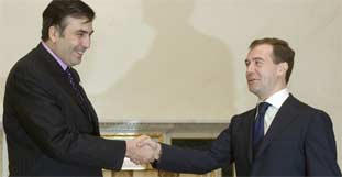 Die EU hatte sich zudem besorgt gezeigt über die jüngste Verlegung russischer Soldaten zur Reparatur von Bahntrassen in Abchasien. EU-Chefdiplomat Javier Solana hielt sich am Freitag in der Schwarzmeerregion auf, um sich selbst ein Bild von der Lage zu machen. Der EU-Politiker hatte Tiflis und Moskau am Donnerstag aufgerufen, ihre Beziehungen zu normalisieren. Saakaschwili traf den neuen Kremlchef erstmals seit dessen Amtseinführung vor einem Monat persönlich.