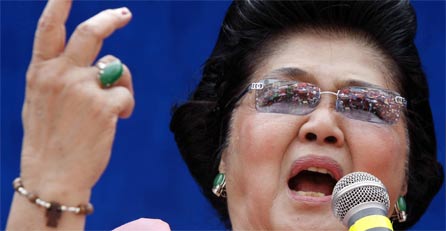 Ferdinand Marcos regierte die Philippinen von 1966 bis zu seinem Sturz 1986. Nach Jahren im Exil kehrte seine Witwe 1991 in ihre Heimat zurück und kandidierte ohne Erfolg für die Präsidentschaft. Von 1995 bis 1998 vertrat sie ihre Heimatprovinz Leyte im Parlament. Danach zog sie sich aus dem politischen Leben zurück. Imelda Marcos war vor allem für ihren luxuriösen Lebensstil bekannt, der sich unter anderem in ihrer riesigen Schuhsammlung zeigte. Nach ihrer Flucht in die USA wurden in den Räumen der First Lady im Präsidentenpalast etwa 3.000 Paar Schuhe entdeckt.