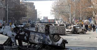 Die Europäische Union und die USA hatten sich besorgt über die Entwicklung in dem Kaukasusstaat gezeigt. Aus der Präsidentenwahl war der prorussische Regierungschef Sergej (Serzh/Sersch) Sarkisian nach Angaben der Wahlleitung als Sieger hervorgegangen. Die Opposition wirft Sarkisian Wahlfälschung mit Hilfe des Staatsapparates vor. Die Organisation für Sicherheit und Zusammenarbeit in Europa (OSZE) hatte die Abstimmung dagegen als weitgehend demokratisch beurteilt.