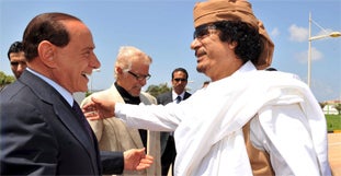 Berlusconi machte die Ankündigung in Benghazi 1000 Kilometer östlich der Hauptstadt Tripolis, wo er mit Staatschef Muammar Gaddafi im Laufe des Tages ein Abkommen über den Umgang mit der Kolonialvergangenheit unterzeichnen wollte.