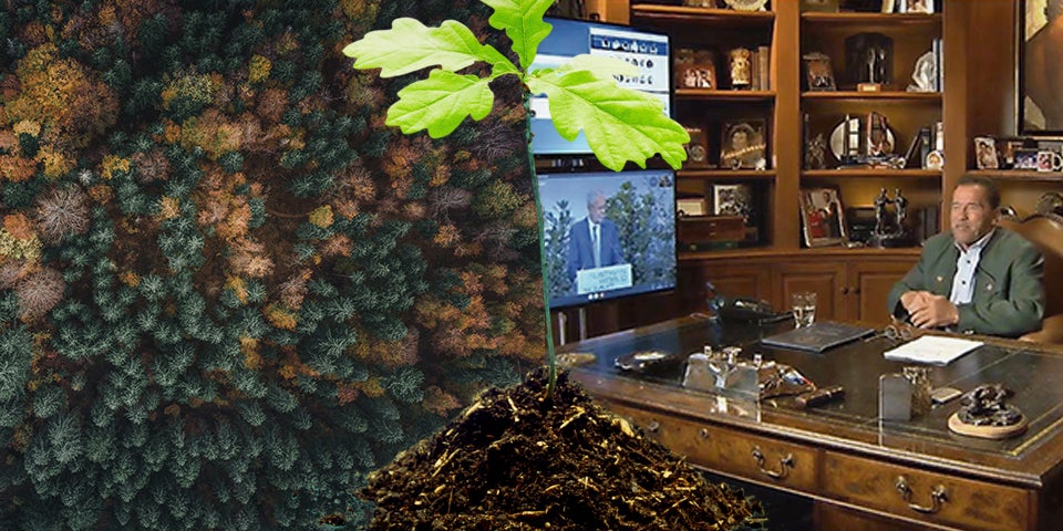 Wien/Los Angeles. Ein virtueller „Terminator“, zugeschaltet aus seinem Haus in Los Angeles, Bäumchen als Abstandhalter – und die Politspitze aus Österreich, der Slowakei und Kroatien. Trotz Corona wurde der diesjährige Klima-Gipfel „Austrian World Summit“ (AWS) in der Spanischen Hofreitschule in Wien erneut zu einem Riesenspektakel. „Ich sehe fast mehr Bäume als Menschen“, scherzte Bundespräsident Alexander Van der Bellen zu Beginn seiner Rede. „Wir werden die Welt schon in Ordnung bringen! Wir sind ja schließlich keine Menschen!“, zitierte er aus dem Erich Kästners Buch Konferenz der Tiere. „Auch eine ‚Steirische Eiche‘ befindet sich hier: Arnold, du bist eine Inspiration“, lobte VdB Arnie – und verlieh ihm das „Große Goldene Ehrenzeichen mit Stern“.