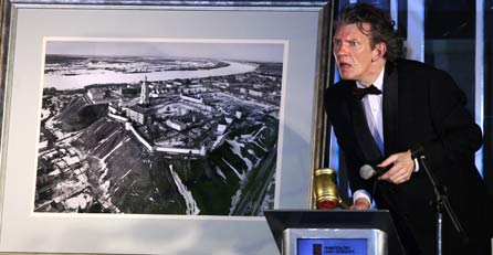 Ein vom russischen Präsidenten Dmitri Medwedew aufgenommenes Foto ist bei einer Wohltätigkeitsauktion für 51 Millionen Rubel (1,2 Millionen Euro) versteigert worden. Das Schwarz-Weiß-Bild zeigt den Kreml (Burg, Festung) der sibirischen Stadt Tobolsk. Ersteigert wurde es von einem Vorstandsmitglied des Papierkonzerns Ilim, für den Medwedew früher als Anwalt arbeitete.