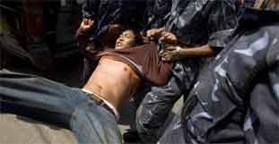 Die Demonstranten, unter ihnen viele Mönche, riefen in Sprechchören: "Stoppt das Töten in Tibet" und "Lang lebe der Dalai Lama". Die Festgenommenen wurden in Lastwagen abtransportiert.
