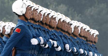 Die Soldaten bei der Militärparade in Peking durften nur alle 40 Sekunden mit den Augenlidern zwinkern. Bei dem Vorbeimarsch an der kommunistischen Führung am Platz des Himmlischen Friedens rissen die Soldaten am Donnerstag entsprechend die Augen auffällig weit auf. Ihre Schritte durften nur 75 Zentimeter lang sein, so dass über 96 Meter genau 128 Schritte gemacht wurden, wie staatliche Medien berichteten.