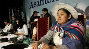 In Bolivien hat die Verfassungsgebende Versammlung am Samstagabend (Ortszeit) mit den Stimmen der Regierungsanhänger eine neue Staatsordnung angenommen. Anhänger der konservativen und liberalen Oppositionsparteien hätten an der Sitzung in einer Militärschule in Sucre im Südosten des Landes nicht teilgenommen, teilte die Präsidentin der Versammlung, Silvia Lazarte, mit. Der Verfassungstext werde aber später noch einmal detailliert in dem Gremium diskutiert. Der sozialistische Präsident Evo Morales hatte die Konstituante einberufen, damit sie die Verfassung des Landes erneuert und besser an die Bedürfnisse der Armen anpasst.