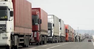 ukrainischen Grenzbehörden bildeten am Dienstag mehr als 2.000 Lastwagen auf