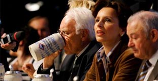 Und ebenso deutlich wird, dass Stoiber ein Jahr nach dem Abschied aus der Münchner Staatskanzlei seinen Frieden mit Beckstein nicht gemacht hat. Er wünsche sich, dass die CSU in Bayern selbstbewusst auftrete und "nicht mit hängenden Schultern - na ja, 49 Prozent wären schon auch was", ruft er beschwörend. "Das ist nicht der Mythos CSU." Das ist eine kaum verborgene Attacke gegen Beckstein. Denn der hat erklärt, dass von einem Verlust der absoluten Mehrheit die Welt nicht untergehe. Und viele Zuschauer wissen sofort, wer gemeint ist. Der Großteil des Publikums sind CSU-Anhänger und -Mitglieder.