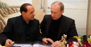 Silvio Berlusconi empfing Wladimir Putin. Gespräche über die Übernahme der maroden Alitialia durch die Aeroflot wurden diskutiert.