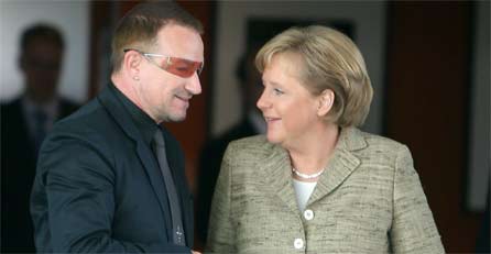 Bono engagiert sich seit Jahren in der Armutsbekämpfung und für den Klimaschutz. Bei G-8-Treffen und anderen hochrangigen Politikgipfeln hat er praktisch alle wichtigen Staats- und Regierungschef der Welt persönlich getroffen - auch Merkel.