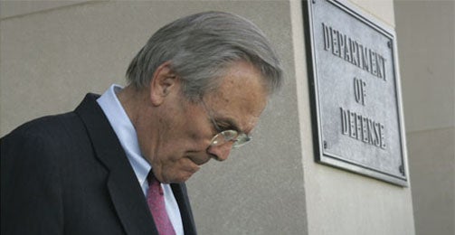 Rumsfeld hatte maßgeblichen Anteil an der Entscheidung für eine Invasion zum Sturz des Regimes von Saddam Hussein. Seine Ablösung unmittelbar nach der Niederlage der regierenden Republikaner bei der Kongresswahl vom 7. November steht in Zusammenhang mit den zunehmenden Forderungen nach einem Kurswechsel in der Irak-Politik. Nach dem Sieg der Demokraten bei der Kongresswahl Anfang November hatte er seinen Rücktritt eingereicht, am 18. Dezember soll er vom ehemaligen CIA-Chef Robert Gates abgelöst werden. Am Freitag warnte er beim Abschied von seinem Stab vor einem schnellen Abzug der USA aus dem Irak. Gefragt seien Geduld und Durchhaltevermögen. Zu den Vorschlägen der Baker-Kommission sagte Rumsfeld, sie habe nichts vorgelegt, was nicht von den US-Militärs bedacht worden sei.