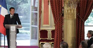 Im Kampf gegen den Terrorismus forderte Sarkozy bei einer Konferenz der in Paris akkreditierten Botschafter eine "vollständige Zusammenarbeit" der Sicherheitsdienste der betroffenen Länder. "Unsere Länder, alle unsere Länder, die der muslimischen Welt eingeschlossen, sehen sich heute der Bedrohung durch kriminelle Attentate ausgesetzt, wie sie New York, Bali, Madrid, Bombay, Istanbul, London oder Casablanca getroffen haben", sagte er. "Wir müssen daran denken, was passiert, wenn die Terroristen morgen nukleare, biologische oder chemische Mittel einsetzen?"