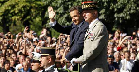 Anlässlich der traditionellen Militärparade zum französischen Nationalfeiertag auf den Pariser Champs-Élysées hat Staatspräsident Nicolas Sarkozy am Dienstag verstärkte Investitionen für moderne Waffen und Aufklärungsgeräte der Streitkräfte gefordert. Das Defilee verfolgten von der Staatstribüne als ausländische Ehrengäste der deutsche Bundespräsident Horst Köhler und der indische Regierungschef Manmohan Singh.
