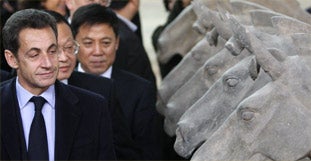 Frankreichs Präsident Nikolas Sarkozy besucht China. Im Gepäck: Milliarden-Aufträge für Peking, von Airbus bis Telefontechnik.