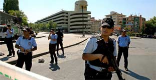 Polizei in der Hauptstadt Ankara einen mit Sprengstoff beladenen Kleinbus in