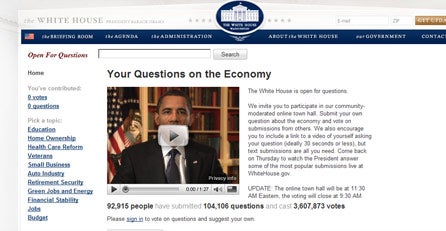 Der Andrang war riesig: Zwei Stunden vor Obamas Äußerungen waren auf der Webseite des Weißen Hauses fast 100.000 Fragen eingegangen. Die Bürger hatten dabei auch die Gelegenheit, jene zu markieren, die sie für besonders interessant hielten: Auf diese Fragen wollte sich Obama dann bei seinen Antworten konzentrieren. Wissensdurstig zeigten sich die Bürger insbesondere in Sachen Staatshaushalt, Arbeitsmarkt und finanzielle Stabilität.