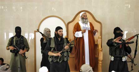 vermummte, mit Kalaschnikow-Gewehren bewaffnete Mitglieder der Jund Ansar