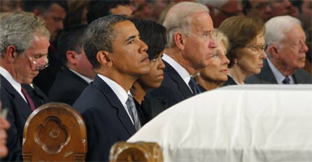Beim Trauergottesdienst in Boston waren der amtierende US-Präsident Obama und die drei ehemaligen Carter, Clinton und George W. Bush dabei.