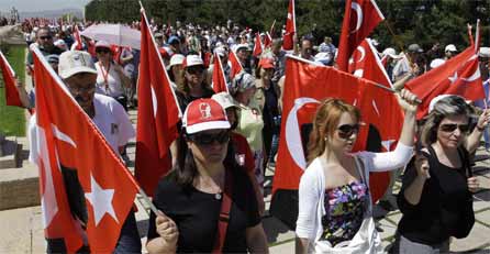 Veranstaltet wurde die Kundgebung von der "Vereinigung für kemalistisches Gedankengut". Die Organisation macht sich für das Vermächtnis von Mustafa Kemal Atatürk stark, des Gründers der modernen - und laizistischen - Türkei. Die Demonstranten zogen zum Atatürk-Mausoleum, wo sie bereits von weiteren Zehntausenden Kundgebungsteilnehmern erwartet wurden. Es handelt sich um die ersten derartigen Massenproteste seit 2007, als viele Türken in mehreren Städten des Landes gegen die Regierungspartei AKP auf die Straße gegangen waren, der sie eine schleichende Islamisierung des Landes vorwarfen.