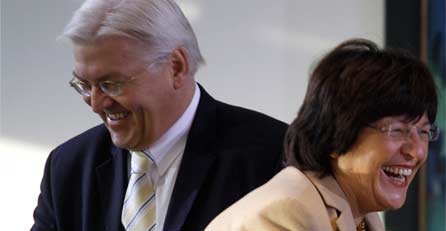 SPD-Chef Steinmeier hat die Gesundheitsministerin nach der leidigen Dienstwagenaffäre nun doch an Bord genommen.