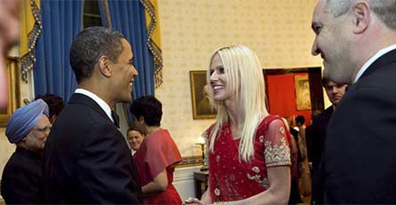 Das Paar, das ohne Einladung an einem Dinner im Weißen Haus teilnehmen konnte, ist sogar persönlich von US-Präsident Barack Obama begrüßt worden. Ein am Freitag (Ortszeit) vom Weißen Haus freigegebenes Foto zeigt, wie ein lächelnder Präsident das mit anderen Gästen in einer Reihe stehende Paar Tareq und Michaele Salahi begrüßt. An der Seite Obamas steht der indische Ministerpräsident Manmohan Singh, zu dessen Ehren der US-Präsident das Abendessen gab.