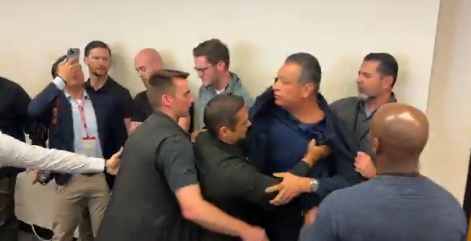 Auf Videoaufnahmen ist zu sehen und zu hören, wie Padilla seinen Namen und seine Position nennt und dann während Noems Äußerungen ruft: "Ich habe Fragen." Noch während er spricht, greifen Sicherheitskräfte ein, packen ihn und zerren ihn aus dem Raum. Dabei ist Padilla noch zu hören, wie er "Hände weg" ruft. Im Flur wird er von Beamten der Bundespolizei FBI zu Boden gebracht und in Handschellen gelegt. Ob den Einsatzkräften in dem Moment bewusst war, dass es sich um einen amtierenden US-Senator handelte, blieb zunächst unklar.