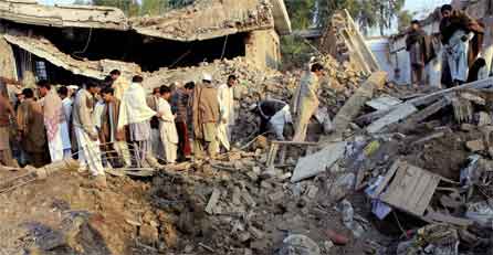 Eine Knabenschule stürzte teilweise ein. Nach Angaben von Augenzeugen raste der Selbstmordattentäter mit einem Lieferwagen auf die Wache zu, bevor er den Sprengsatz zündete.
