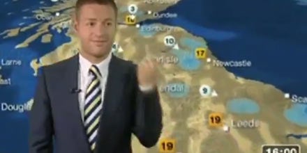 Peinliche TV-Panne bei BBC: Tomasz Schafernaker war mit dem Wetter dran. Nachrichtensprecher Simon McCoy kündigte ihn mit den Worten an: "Natürlich wird alles zu 100 Prozent genau sein. Nenne uns alle Details, die du gerne hättest."