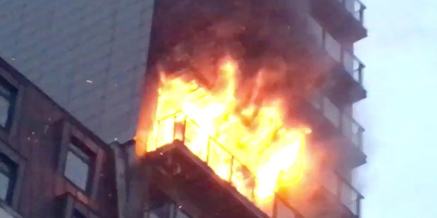 Die oberen Stockwerke standen in Flammen - das Feuer dürfte im neunten Stockwerk ausgebrochen sein.