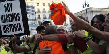 Mit Tränen in den Augen erreichen auch Andrea Portela und Miguel Gonzalez die Puerta del Sol. Die Architektin und der Betriebswirt aus dem nordspanischen Oviedo sind erschöpft, ihre Füße schmerzen. Mit 150 weiteren "Empörten" sind sie auf der Nordroute über 500 Kilometer in die spanische Hauptstadt gewandert, um am "Volksmarsch der Empörten" teilzunehmen. "Wir müssen den Politikern zeigen, dass die Proteste vor den Wahlen im Mai nur der Anfang waren, und sie nicht einfach so weiter machen können wie bisher", begründet Andrea gegenüber der APA ihre Teilnahme am "Volksmarsch".