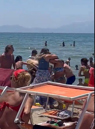Es artete in einer wilden Massenschlägerei aus. Ein Boxkampf in Bikini und Badehose - am Strand von Italien.