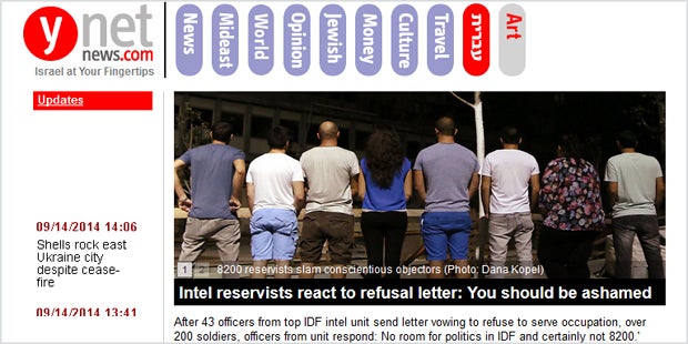 D., der nicht mit vollem Namen genannt wird, ist Reservist der Elite-Einheit 8200 der israelischen Armee, zuständig für Informationsbeschaffung. Am Freitag wandten sich 43 Mitglieder der Einheit an die Öffentlichkeit. In einem Brief kündigten Israels beste Späher an, künftig nicht mehr gegen die Palästinenser spionieren zu wollen. "Wir können nicht mit gutem Gewissen weiterhin in diesem System dienen und die Rechte von Millionen Menschen verletzten", heißt es in dem Schreiben.