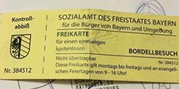 Der Aufschrift auf dem Gutschein ist zu entnehmen, dass dieser vom „Sozialamt des Freistaates Bayern“ ausgestellt wird. Blöd nur, dass das Land Bayern gar kein Sozialamt hat. Auch was ein Kontrollabbiß (eigentlich sollte es Kontrollabriss heißen) sein soll, ist unklar.