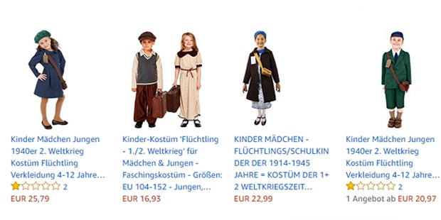 "Evakuierter Junge": Auf Amazon bieten diverse Händler "2. Weltkriegs Kostüme" für Kinder an.