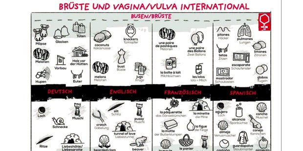 Im "Sex-Lexikon" sind kleine Symbolbilder gezeichnet. In jedem Land verwenden die Menschen andere Ausdrücke für "Penis". KiKA will "Lust auf Angeberwissen machen" und schreibt: „Wie wär‘s mit einem Fremdsprachen-Spickzettel für geläufige Bezeichnungen von Brust und Vagina bzw. Penis und Hoden? Weil wir sehr gelacht haben und auch noch etwas dazulernten, wollten wir dir das nicht vorenthalten. Denn ganz ehrlich: ein bisschen Spaß muss sein.“