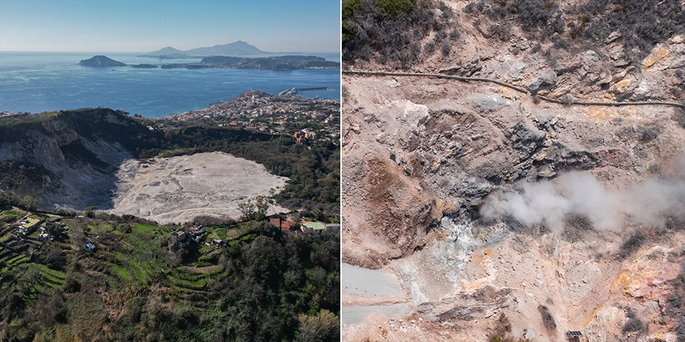 Im Mai wurde die Gegend um die Phlegräischen Felder (italienisch: Campi Flegrei) von einem Beben der Stärke 4,4 erschüttert – dem stärksten seit vier Jahrzehnten. Das Epizentrum lag in der Nähe von Pozzuoli, einer Stadt, die etwa 20 Kilometer westlich von Neapel liegt. In den letzten sechs Monaten wurden mehr als 3.000 kleinere Erschütterungen registriert – deutlich mehr als üblich. Laut dem italienischen Institut für Geophysik und Vulkanologie (INGV) befindet sich geschmolzenes Gestein nur wenige Kilometer unter der Erdoberfläche – ein Zustand, der für Fachleute besorgniserregend ist.