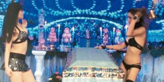 So wurde die Trauerfeier für Herrn Jian zu einem Fest mit Nachtclub-Atmosphäre. Zwei Stripperinnen – nur in Dessous und Stiefeln bekleidet – tanzten um den Sarg und räkelten sich darauf. Die anwesenden Gäste gefiel es und so wurde das Begräbnis zu einer großen Party.