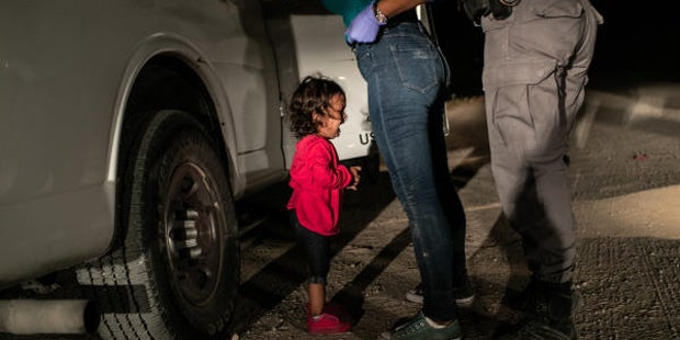 Moore hatte die Szene im US-Staat Texas im Juni 2018 festgehalten: Eine junge Frau aus Honduras, die in den USA Asyl beantragen wollte, war gemeinsam mit ihrer kleinen Tochter an der Grenze aufgegriffen worden. Während das Mädchen weinte, wurde die Mutter durchsucht.