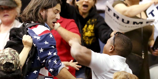 Der Mann hatte zuvor ein Plakat mit Trumps Gesicht und der Aufschrift "Schlecht für Amerika" hochgehalten. Nach Angaben von NBC wurde der Angreifer überwältigt und in Handschellen weggebracht. Er muss sich laut Polizei wegen tätlichen Angriffs verantworten. In letzter Zeit führt die aggressive Rhetorik des Milliardärs zunehmend zu Gewalt zwischen seinen Fans und Gegnern.