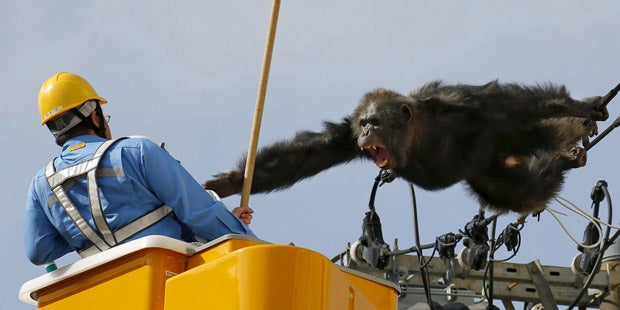 Der Schimpanse „Chacha“ hatte das langweilige Leben im Zoo von Sendai in Japan wohl ziemlich satt. Kurzerhand machte sich der Affe auf die Flucht und hangelte sich entlang von Stromleitungen fort.