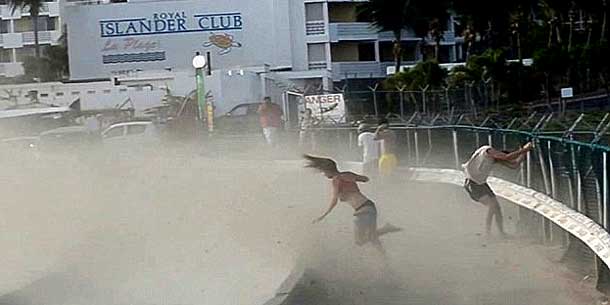 In St. Maarten ist das Ganze ein beliebtes, wenn auch nicht ungefährliches Touristenvergnügen, wie man auf dem Video sehen kann.