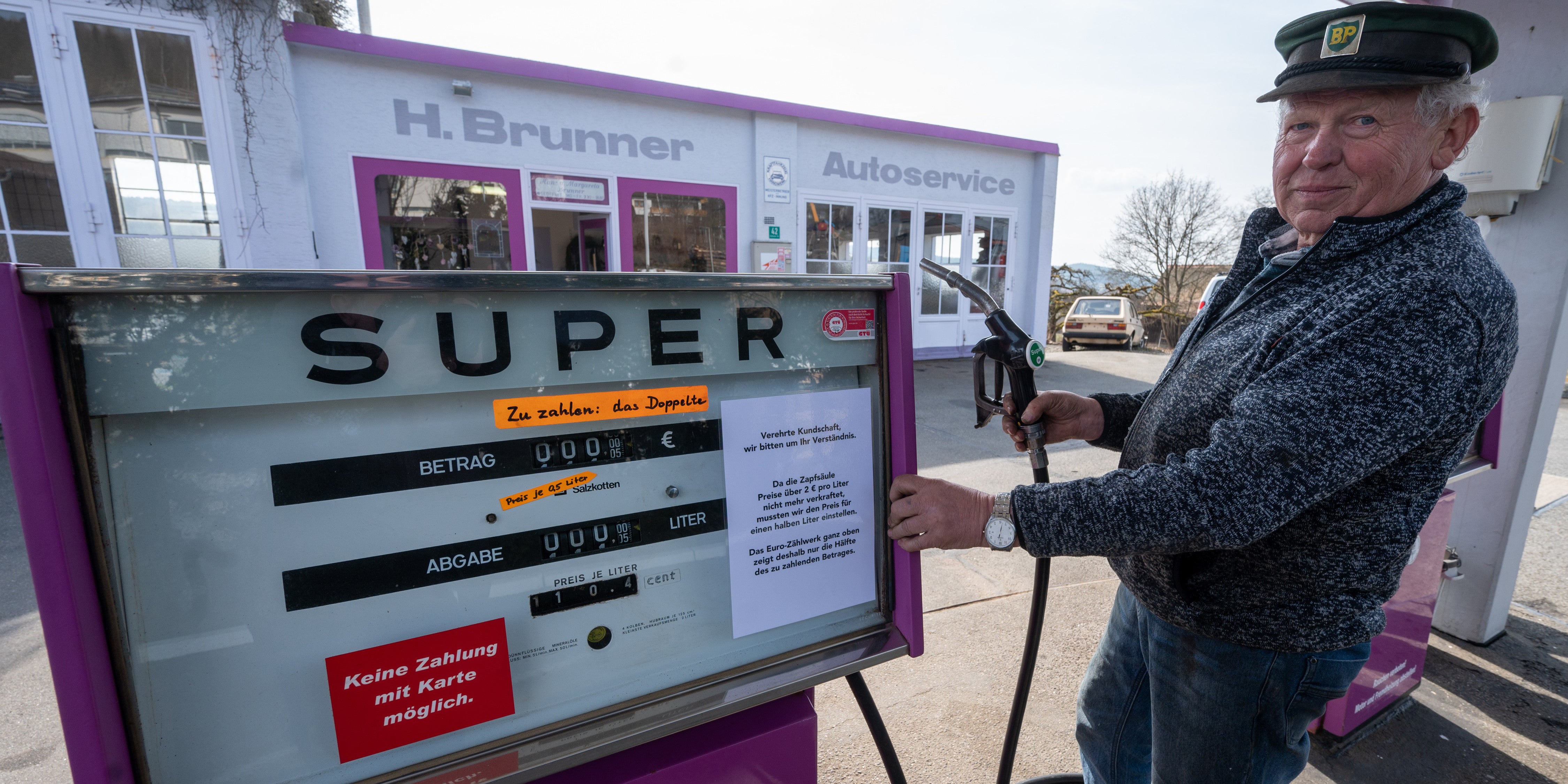 Neue Zapfsäulen anzuschaffen lohne sich nicht mehr, so Brunner. Er verweist auf sein Alter. Aber aufhören wollen er und seine Frau auch noch nicht. Damit entsprechen sie dem Wunsch ihrer Kunden, denn, so erzählt der Tankwart, "die wollen, dass wir nicht aufhören". Deshalb hätten sie den Preis jetzt einfach je halben Liter eingestellt und das Dilemma auf Schildern an den Zapfsäulen erklärt. "Da muss man halt mal zwei rechnen, da müssen wir wieder das Kopfrechnen üben."