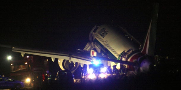 Das Fahrwerk eine Airbus A320 hakte. Die Maschine kippte. 10 Verletzte.