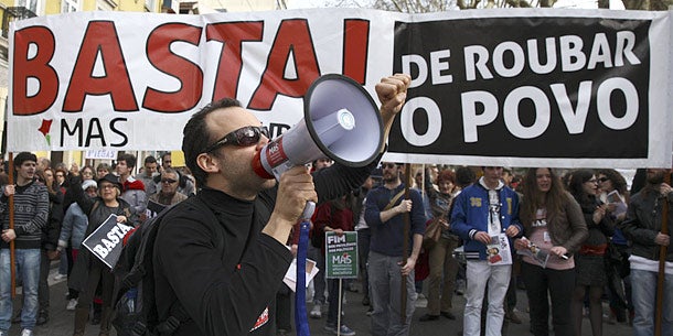 Zehntausende Menschen sind am Samstag in Portugal gegen die Sparpolitik der Regierung auf die Straße gegangen. "Troika und Regierung raus", "Portugal an die Wahlurnen" und "Wahlen jetzt" gehörten zu den Parolen auf den Spruchbändern. Bei einem Protestmarsch in der Hauptstadt Lissabon sangen die Demonstranten die Hymne der Nelkenrevolution von 1974, die Portugal den Weg zur Demokratie ebnete. Insgesamt gab es Demonstrationen in rund 30 Städten im ganzen Land. Organisiert wurden die Proteste von einer überparteilichen Bürgerbewegung.