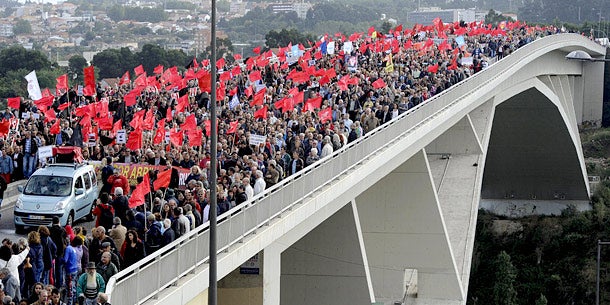 In Porto im Norden des Landes zogen Demonstranten über die 370 Meter lange Infante-Brücke über den Fluss Douro. Die Organisatoren sprachen von 50.000 bis 60.000 Protestteilnehmern, die Polizei zählte nach eigenen Angaben 25.000 Demonstranten. Die Eurogruppe und der Internationale Währungsfonds hatten Portugal im Mai 2011 insgesamt 78 Milliarden Euro an Notkrediten zugesagt. Im Gegenzug verpflichtete sich die Regierung zu einem drastischen Kürzungsprogramm.
