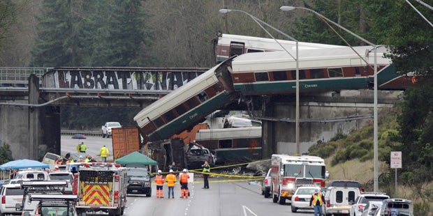Waggons stürzten von der Eisenbahnbrücke auf die Schnellstraße Interstate 5 und beschädigten mitten während der Rushhour fünf Autos und zwei Lastwagen. "Als wir an den Unfallort kamen, war klar, dass es Todesopfer und Verletzungen gibt", sagte der Polizeisprecher von Pierce County, Ed Troyer. Demnach kam in den Autos aber niemand ums Leben.